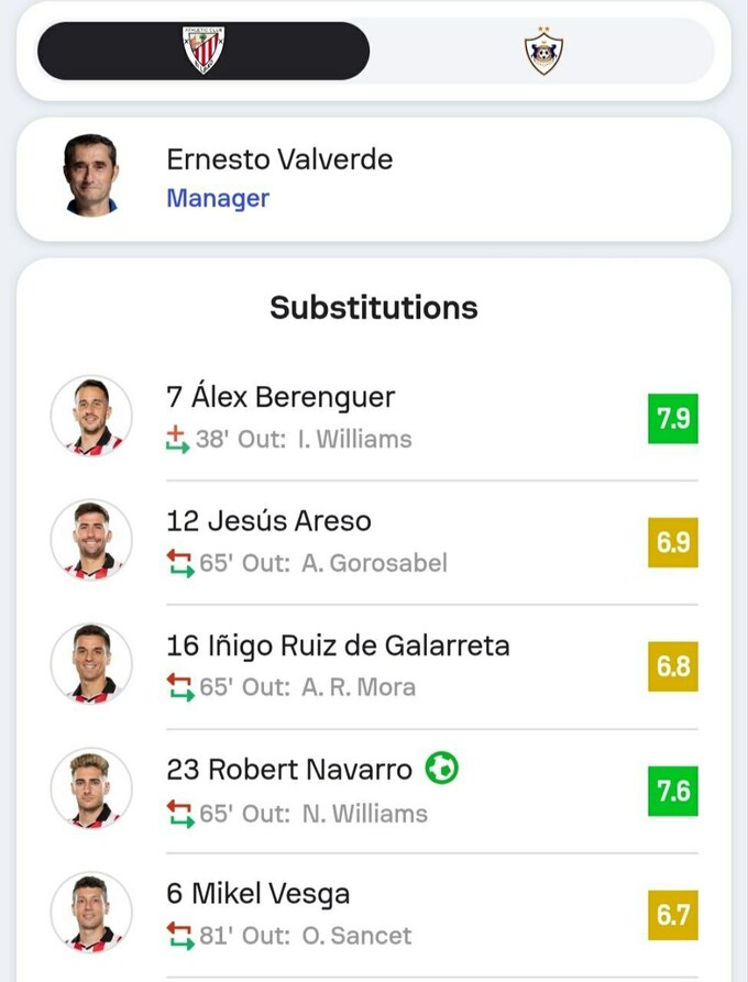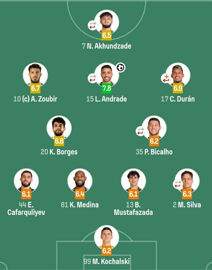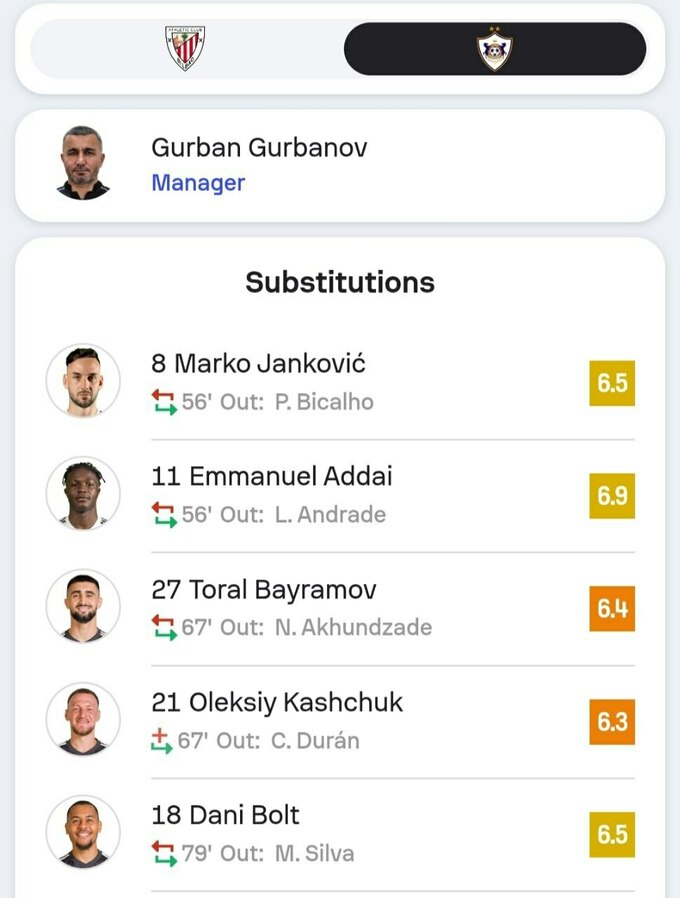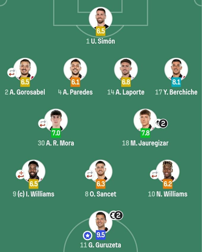 Оцінки гравців в матчі Атлетік Більбао – Карабах (за версією Sofascore):