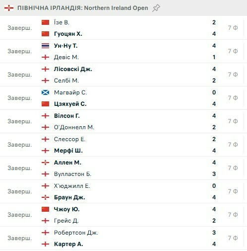 Трамп у грі, Селбі вилетів. Визначено пари 1/8 фіналу турніру в Белфасті