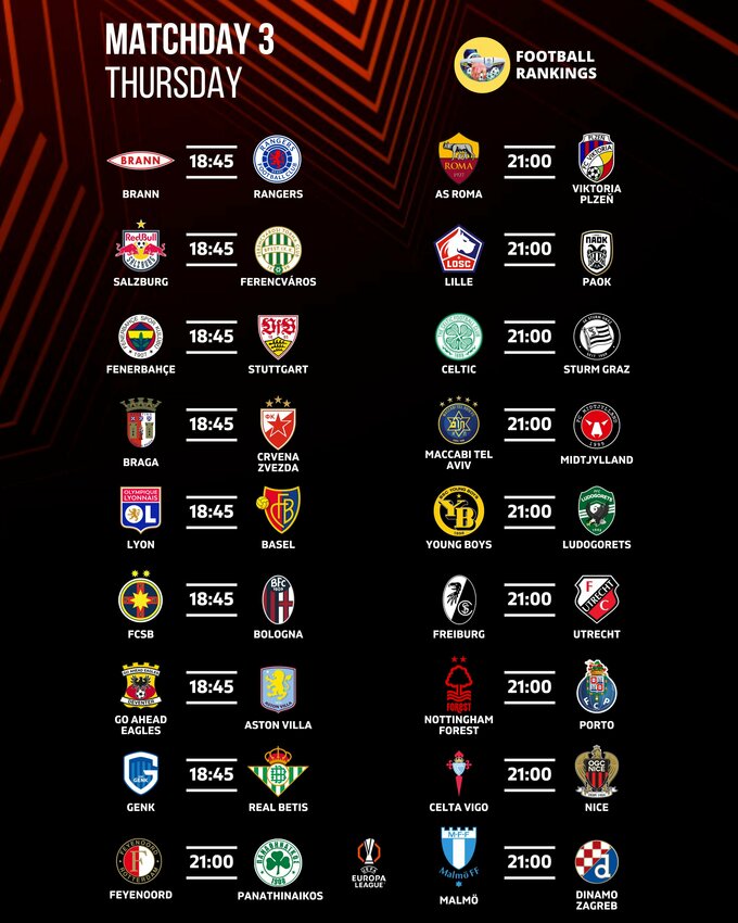 Увечері 23 жовтня відбудуться матчі 3-го туру основного раунду Ліги Європи УЄФА 2025/26.