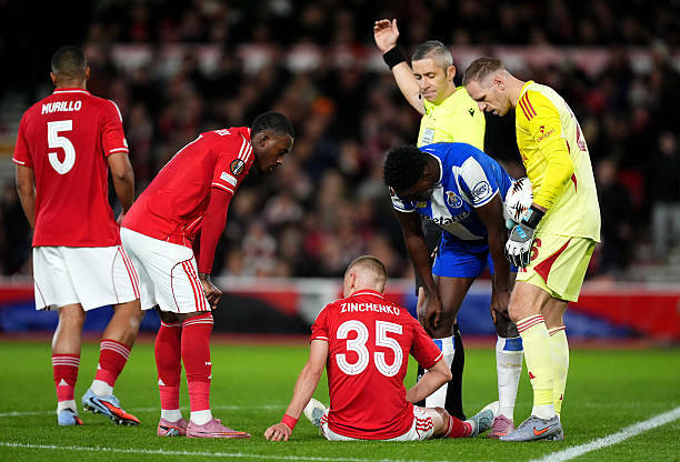 На 45-й хвилині зустрічі за рахунку 1:0 на користь господарів поля – пенальті реалізував Морган Гіббс-Уайт – травму отримав Олександр Зінченко. Українець покинув поле, його замінив Ніколо Савона.
