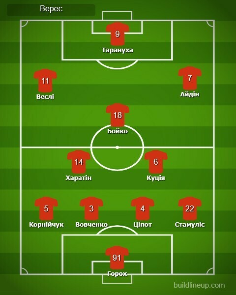 «Верес»: Горох, Стамуліс, Ціпот, Вовченко, Корнійчук, Куція (Протасевич, 50), Харатін, Бойко (Кучеров, 71), Веслі (Нонго, 71), Айдін (Шарай, 71), Тарануха.
