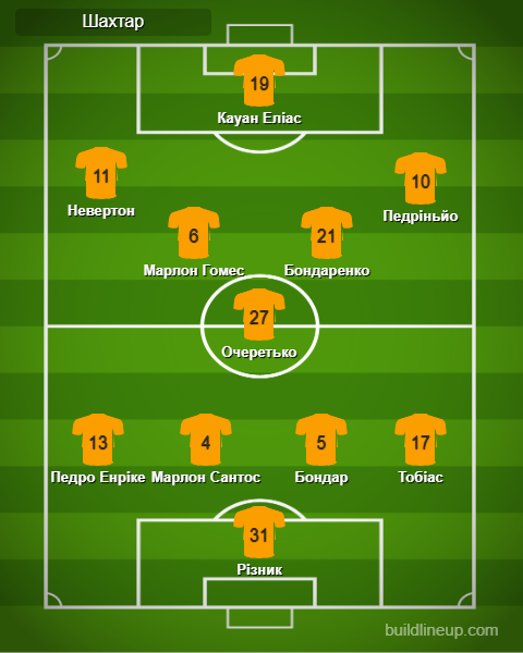 «Шахтар»: Різник – Педро Енріке, Марлон Сантос, Бондар (Матвієнко, 84), Тобіас – Марлон Гомес (Ізакі, 63), Очеретько (Назарина, 74), Бондаренко (Глущенко, 63) – Невертон, Кауан Еліас, Педріньйо (Егіналду, 63).