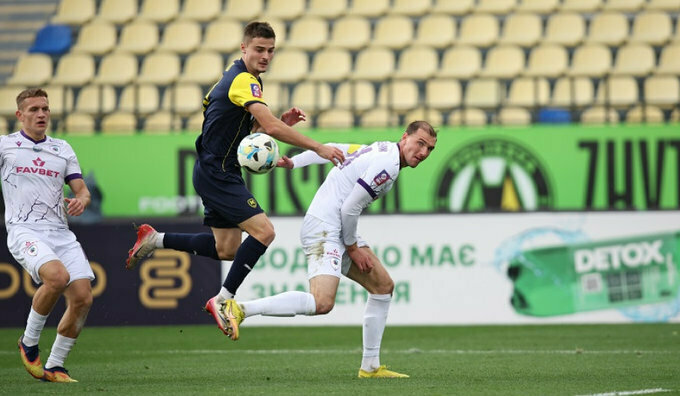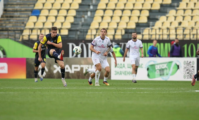 Проте й відповідальність за результат також тиснула на футболістів обох команд, тож насправді яскравого футболу принаймні в першому таймі годі й було шукати. «Жовто-сині» більше тримали м’яч у власних ногах, тоді як «бузковим» це взагалі не надто вдавалось робити, як і виходити до фірмових контратак, тож команда Віталія Пономарьова мусила відбиватись від наступів суперників.