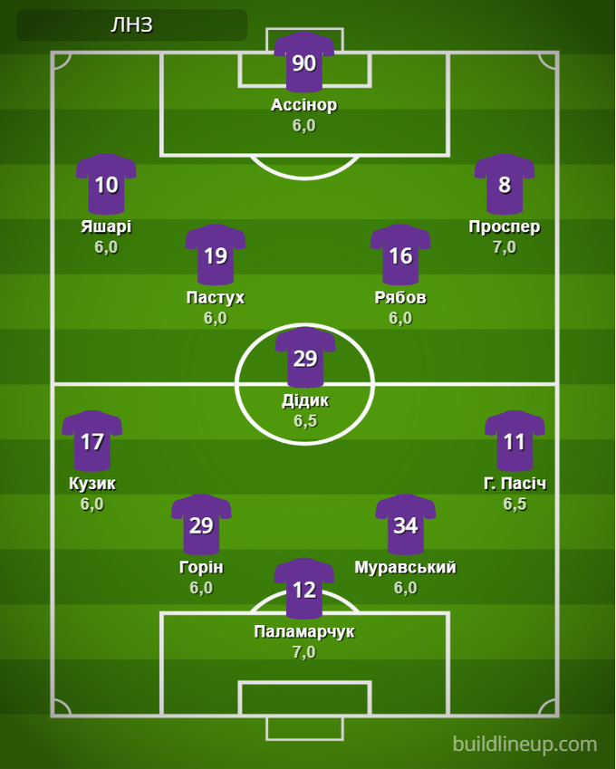 ЛНЗ (заміни): Дайко – 5,5, Нонікашвілі – 6,0, Кравчук – б/о, Танковський – б/о.