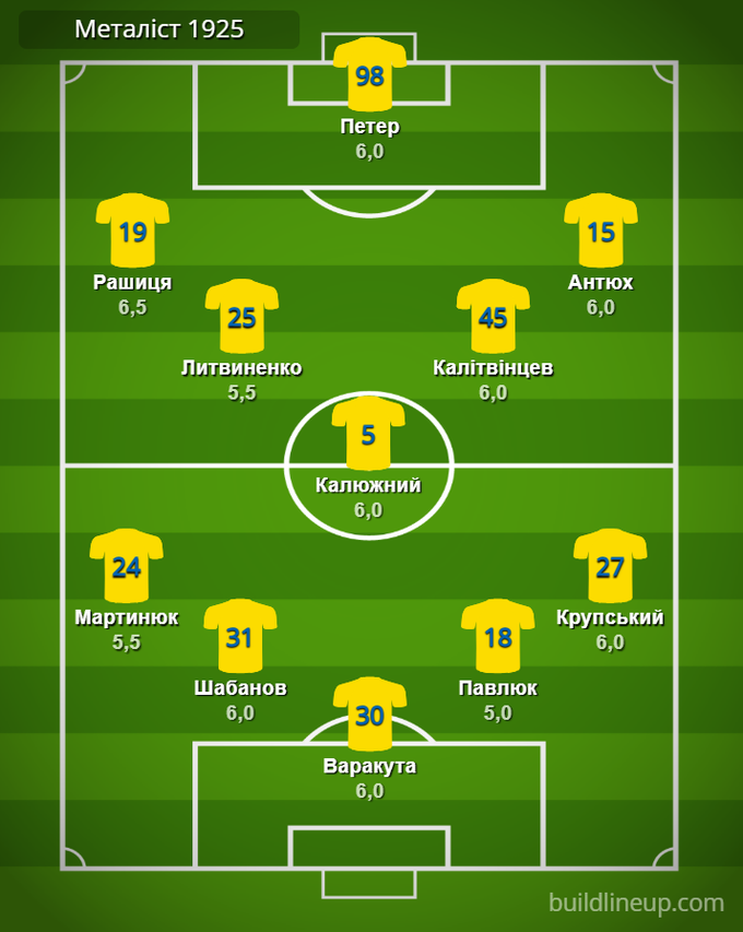 «Металіст 1925» (заміни): Забергджа – 6,0, Капінус – б/о, Когут – б/о.