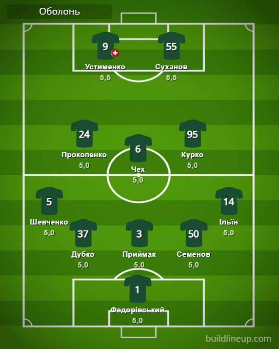 «Оболонь»: Федорівський – Шевченко, Дубко, Приймак, Семенов (Пасіч, 66), Ільїн – Прокопенко, Чех (Черненко, 80), Курко (Кулаковський, 60) – Устименко (Бичек, 60), Суханов (Козлов, 66).