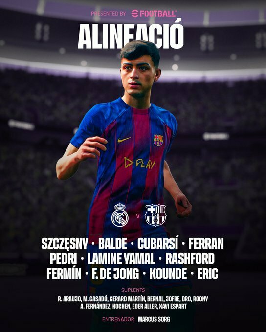«Барселона»: Щесни – Бальде (Мартін, 90+7), Кубарсі (Бардагжі, 84), Е. Гарсія (Араухо, 74), Кунде – Педрі, де Йонг – Рашфорд, Фермін, Ямал – Торрес (Касадо, 74).