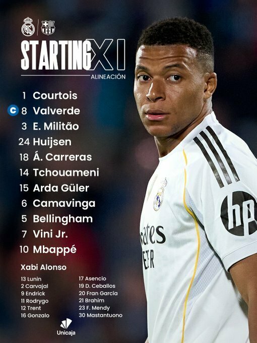 «Реал»: Куртуа – Каррерас, Гюйсен, Мілітао, Вальверде (Карвахаль, 72) – Вінісіус (Родріго, 72), Чуамені, Камавінга, Гюлер (Діас, 66)– Мбаппе (Себальйос, 90), Беллінгем (Г. Гарсія, 90).