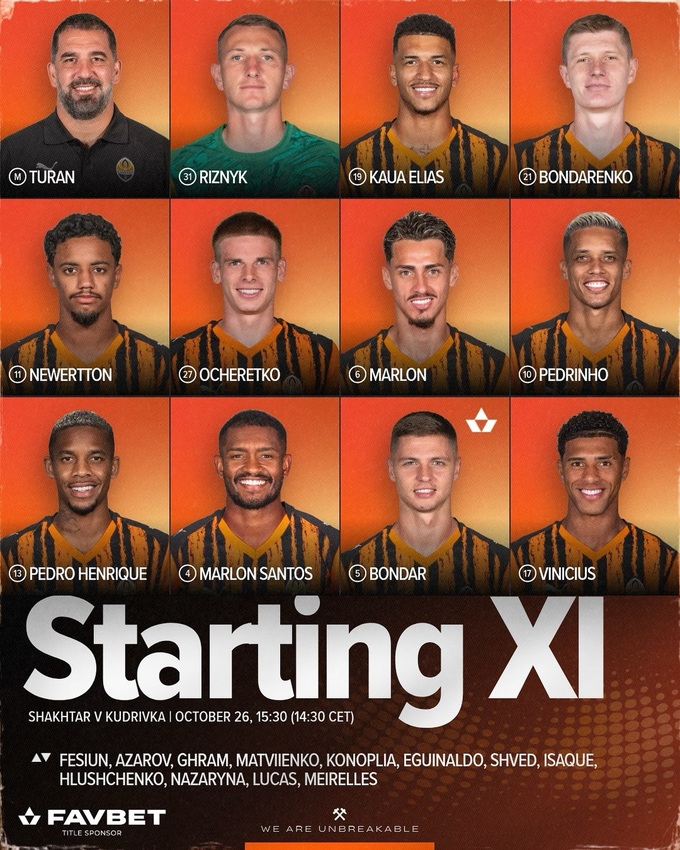 Стартові склади на матч «Шахтар» – «Кудрівка»