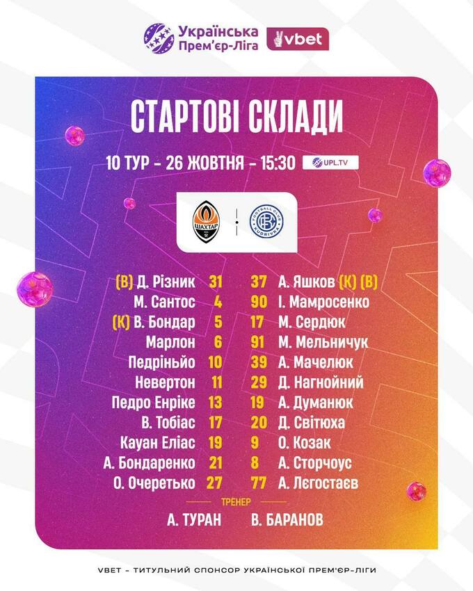 За годину до старту зустрічі обидва тренери визначились з основним складом.