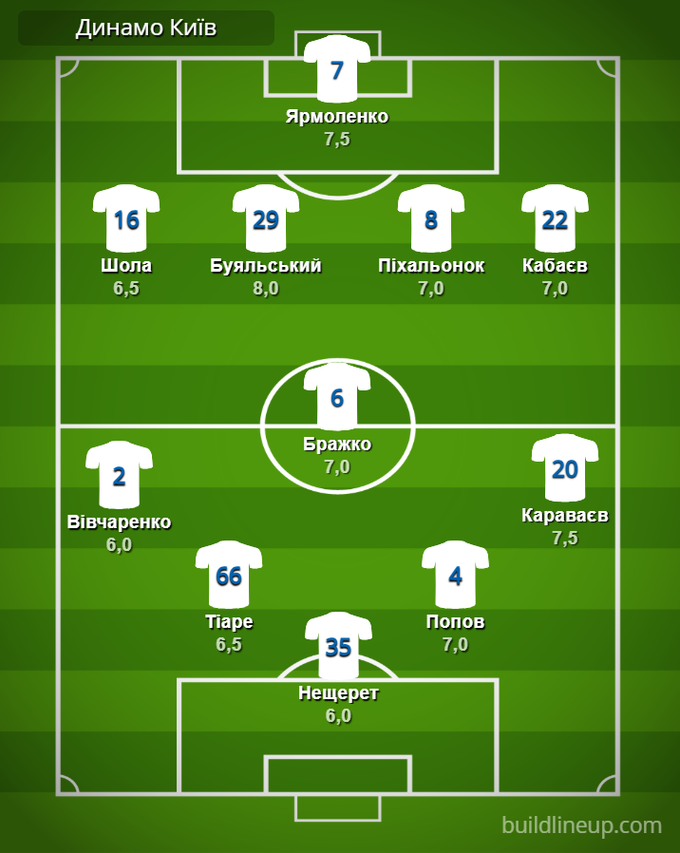«Динамо» Київ (заміни): Рубчинський – б/о, Герреро – 6,5, Тимчик – б/о, Михавко – б/о, Михайленко – б/о.