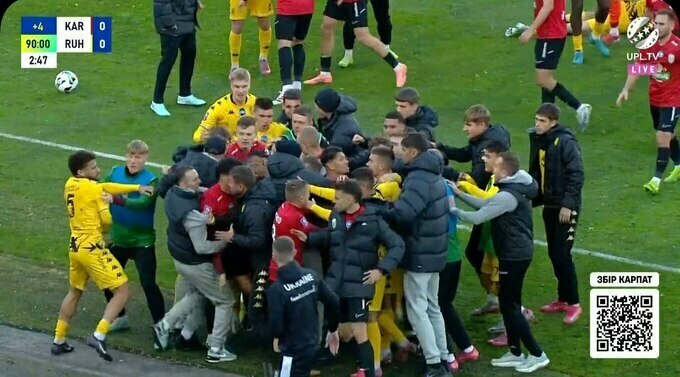 Ну, яке львівське дербі без колотнечі? Правильно, ніяке. Коли здавалося, що матч між львівськими командами цього разу завершиться спокійно, один момент на фінальному відрізку поєдинку таки змусив згадати, що є ще порох у порохівницях. Все почалося з того, що на 90+2 хвилині зустрічі гравця «Руху» Слюбика не дуже гостинно зустріли два гравці суперника – Краснопір та Педросо. Арбітр зустрічі Заброда належним чином не відреагував на той епізод, а ось футболісти «Руху», і фактично вся лава «жовто-чорних» поспішили на розбірки. У підсумку все завершилося бійкою, у яку втрутився навіть наставник «Карпат» Лупашко. Здавалося, що після того, як пристрасті вщухли, призвідники отримають червоні картки. Але все обійшлося: лише два «гірчичники».