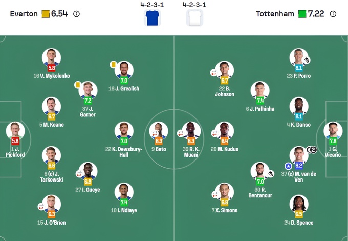 Оцінки матчу «Евертон» – «Тоттенгем» від SofaScore