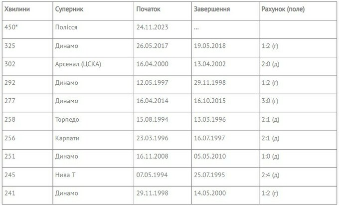 Для «Шахтаря» це рекордна безгольова серія з одним клубом за час виступів в чемпіонаті України.