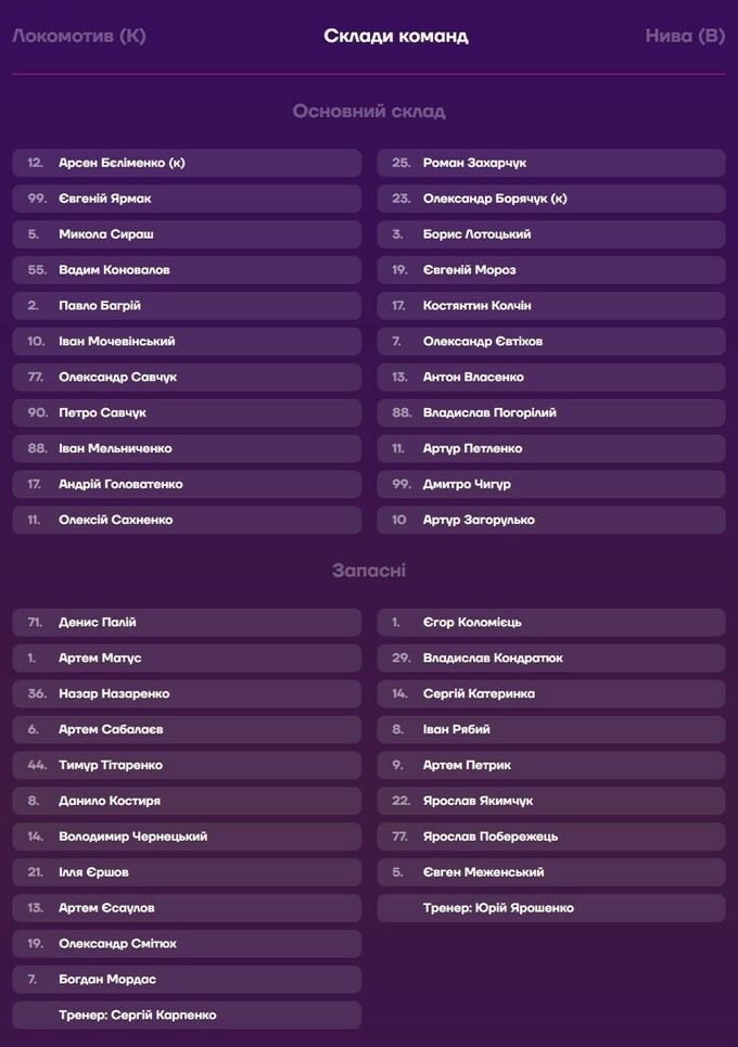 Кубок України. Названо стартові склади на матч Локомотив – Нива В