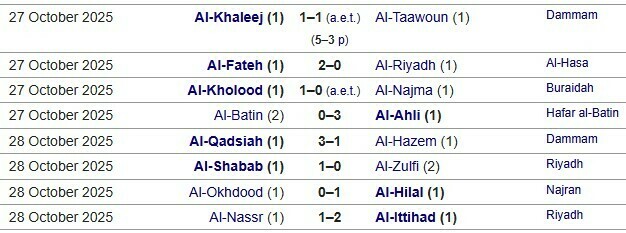 27 та 28 жовтня пройшли матчі 1/8 фіналу Кубка Саудівської Аравії.