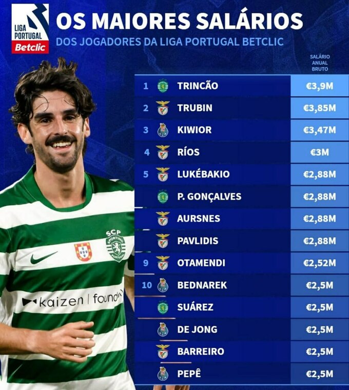 24-річний воротар заробляє 3,85 млн євро на рік до виплати податків. Більше нього у чемпіонаті Португалії отримує лише вінгер лісабонського «Спортінга» Франсішку Трінкау – 3,9 млн євро на рік.