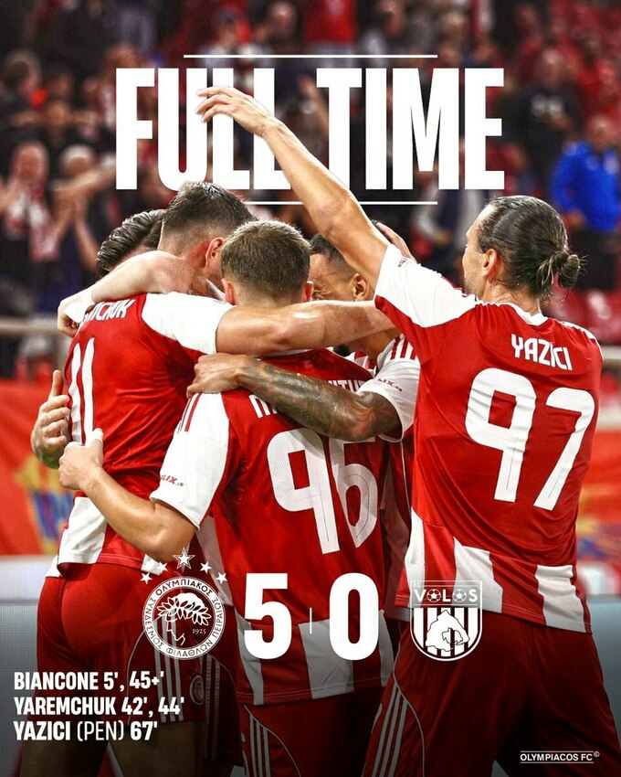 29 жовтня Олімпіакос розгромив команду Волос у матчі Кубка Греції з рахунком 5:0.
