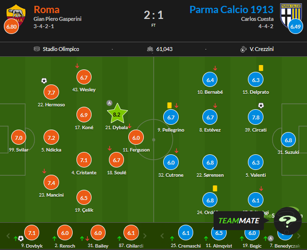 Оцінки WhoScored за матч Рома – Парма (2:1)