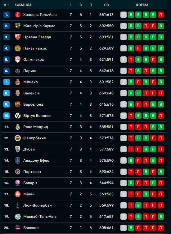 Євроліга: Хапоель продовжує лідирувати, Монако здолав Олімпіакос