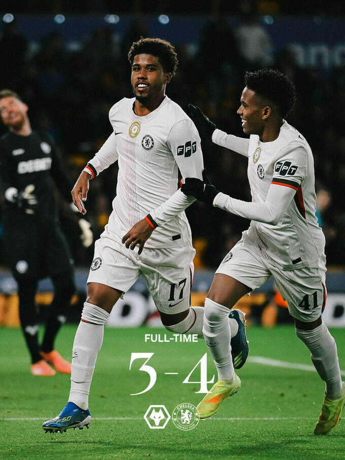 Перші три голи сині забили у першому таймі. Відзначилися Андрей Сантос, Тайрік Джордж та Естевао. У другій 45-хвилинці Вулвз відіграв два м'ячі – ворота Челсі вразили Толуваласе Арокодаре та Давід Моллер Волф.