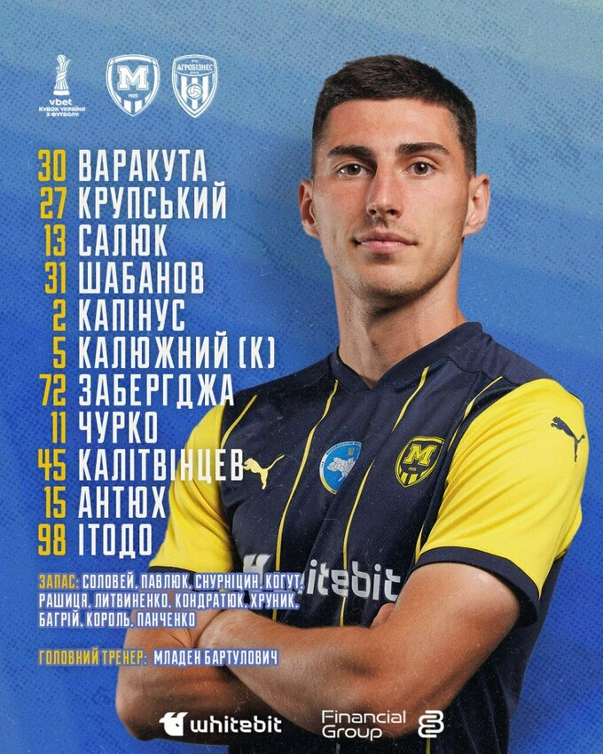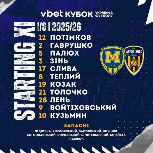 Запасні: Соловей, Литвиненко, Кондратюк, Хруник, Багрій, Король.