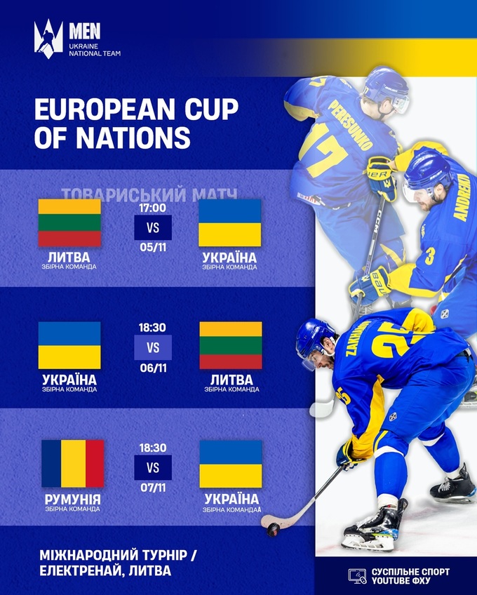 Матчі покаже Youtube ФХУ і Суспільне Спорт.
