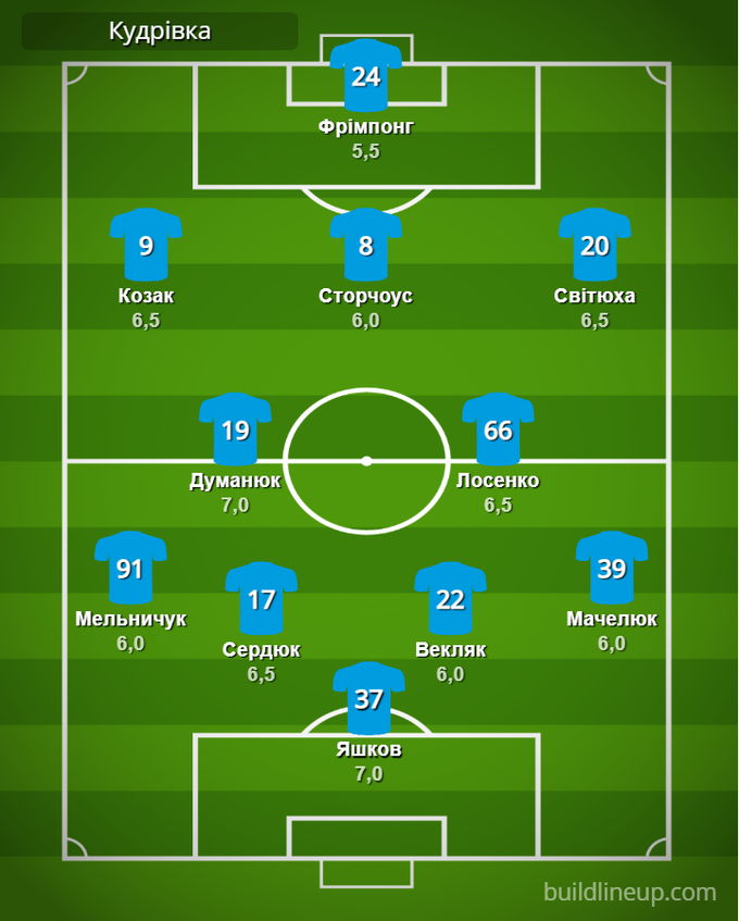 «Кудрівка» (заміни): Морозко – 6,0, Литовченко – б/о, Лєгостаєв – б/о, Мамросенко – б/о, Матвєєв – б/о.