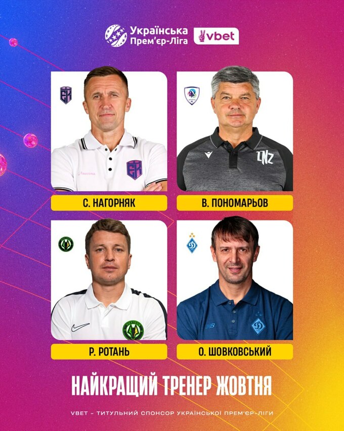 Найкращий тренер УПЛ у жовтні 2025 (номінанти)
