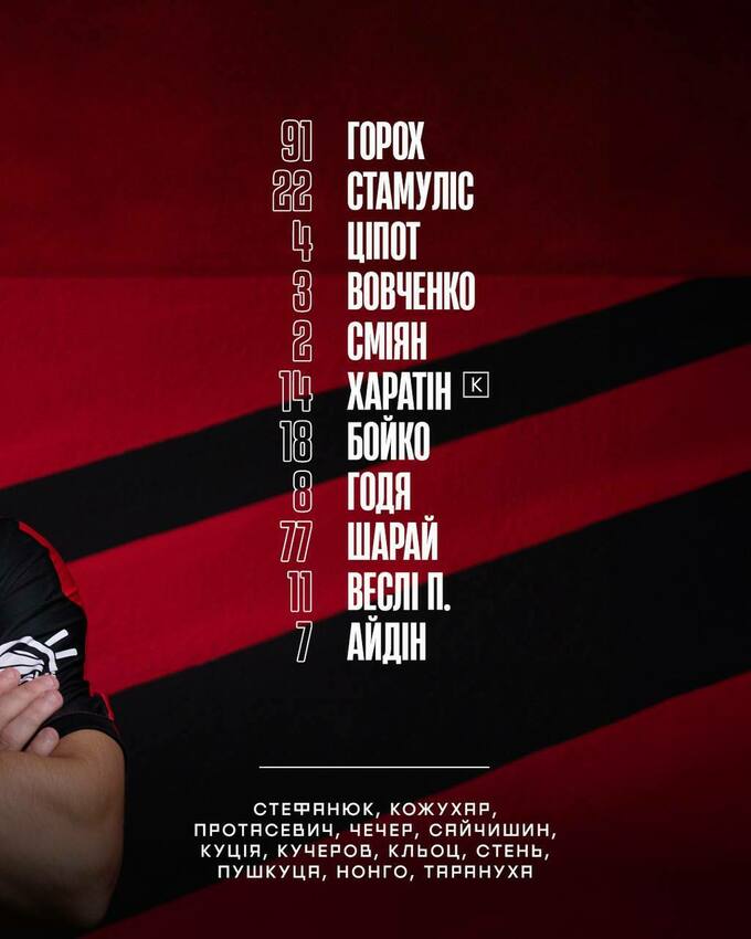 Запасні: Стефанюк, Кожухар, Чечер, Сайчишин, Куція, Кльоц, Стень, Пушкуца.