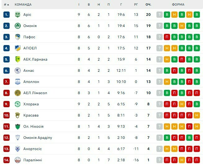 У п'ятницю, 31 жовтня, відбувся матч дев'ятого туру чемпіонату Кіпру, в якому зіграли «Аріс» (Лімассол) та «Хлорака». Господарі здолали суперника з рахунком 3:1.