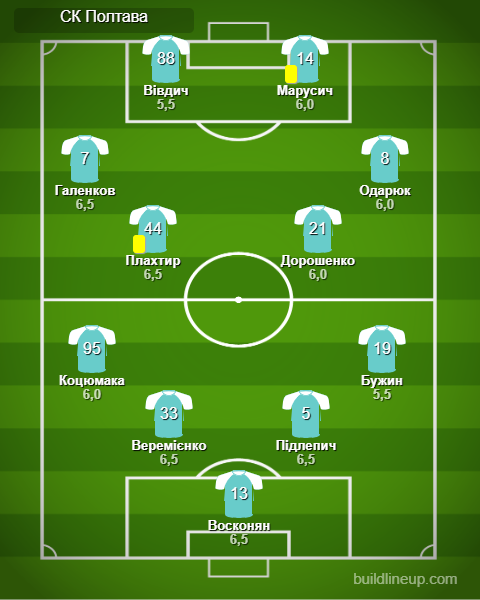 «Полтава»: Восконян – Коцюмака, Веремієнко, Підлепич, Бужин – Галенков, Плахтир (Опанасенко, 83), Дорошенко (Хахльов, 63), Одарюк (Кононов, 84) – Вівдич, Марусич