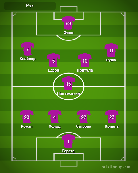 «Рух»: Герета – Роман, Холод, Слюбик, Копина – Підгурський (Рейляну, 84) – Клайвер (Квасниця, 62), Едсон (Сапуга, 71), Притула (Слюсар, 61), Руніч (Алмазбеков, 84) – Фаал.
