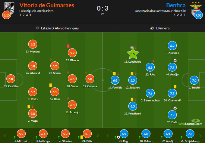 Оцінки WhoScored за матч Віторія Гімараєш – Бенфіка (0:3)