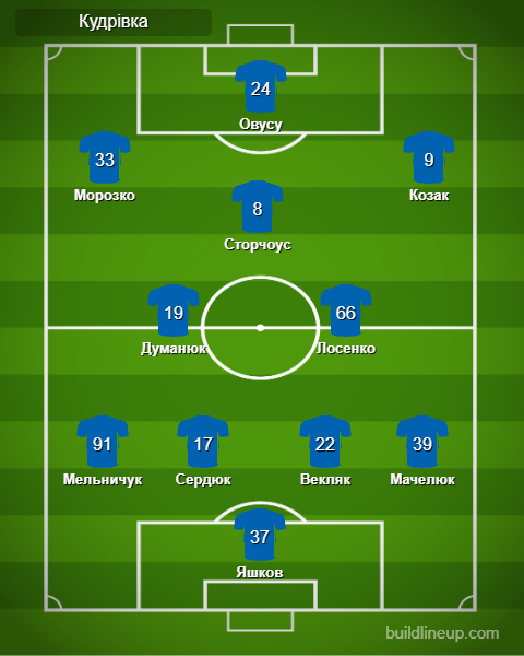 «Кудрівка»: Яшков – Мельничук, Сердюк, Векляк, Мачелюк – Думанюк, Лосенко – Морозко (Пушкарьов, 76), Сторчоус (Литовченко, 62), Козак (Світюха, 76) – Овусу (Лєгостаєв, 46).
