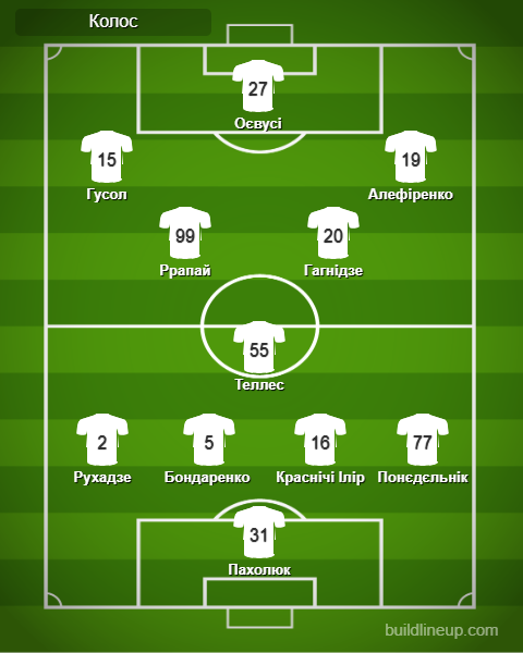 «Колос»: Пахолюк – Рухадзе (Цуріков, 46), Бондаренко, Краснічі Ілір, Понєдєльнік – Ррапай (Демченко, 90+1), Теллес, Гагнідзе – Гусол (Салабай, 56), Оєвусі (Климчук, 56), Алефіренко (Кане, 46).