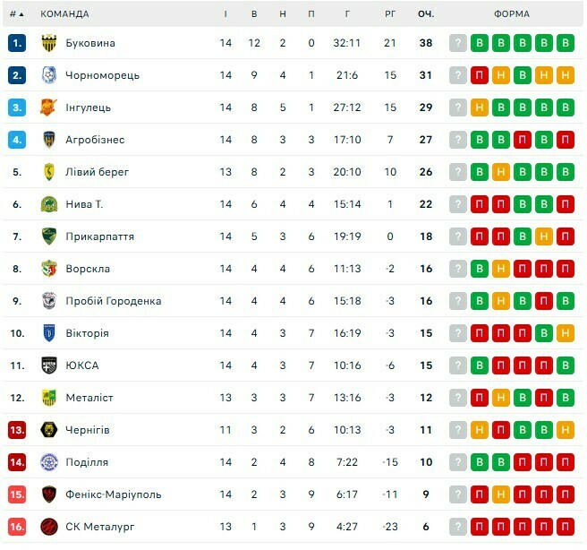 Турнірна таблиця