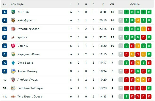 Турнірна таблиця
