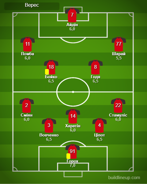 «Верес»: Горох – Сміян, Вовченко, Харатін, Ціпот, Стамуліс – Помба, Бойко, Годя (Кльоц, 75), Шарай (Пушкуца, 90+3) – Айдін (Тарануха, 75)