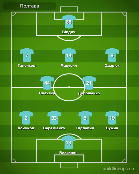 «Полтава»: Восконян – Кононов (Коцюмака, 63), Веремієнко (Місюра, 46), Підлепич, Бужин – Плахтир (Даниленко, 63), Дорошенко (Хахльов, 63) – Галенков, Марусич (Шаповалов, 85), Одарюк – Вівдич.