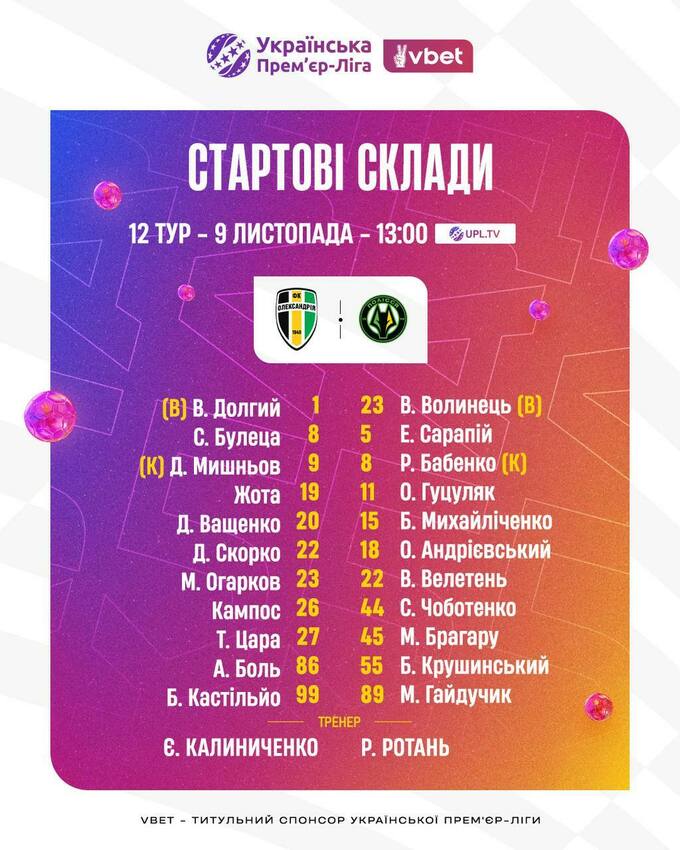 Нестеренко vs Ротань. Склади на матч Олександрія – Полісся в УПЛ
