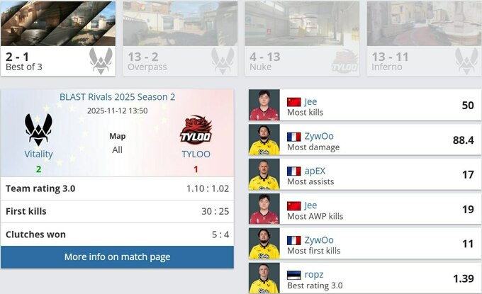 Тепер Vitality готуються до матчу проти FURIA, який визначить, хто потрапить у півфінал BLAST Rivals напряму.