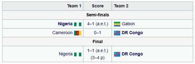 Доля матчі вирішувалася у серії пенальті, де кращими виявилися футболісти ДР Конго (пен. 4:3). У складі Нігерії свої спроби не реалізували Бессі, Саймон та Аджаї, тоді як у ДР Конго лише Мутуссамі та Туанзебе не забили. Переможний удар завдав Шансель Мбемба.