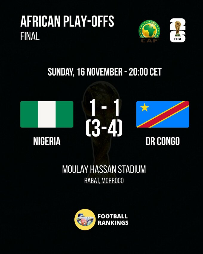 Команда ДР Конго здобула важливу перемогу та вийшла до міжконентинентального плей-оф. Нігерія зазнала невдачі та пролетіла повз ЧС-2026.