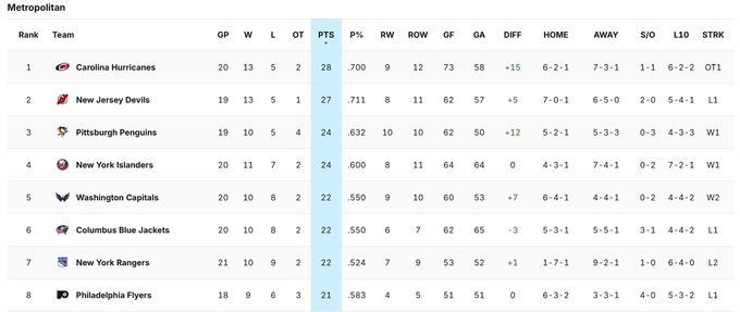 У лідери Сходу вийшла Кароліна, яка програла Міннесоті по булітах, однак одного пункту вистачило, щоб повернутися на перше місце конференції.