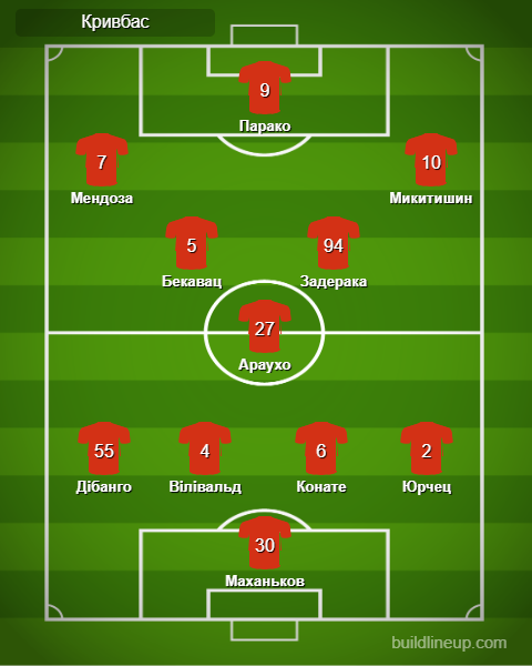 «Кривбас»: Маханьков – Дібанго, Вілівальд, Конате, Юрчец – Араухо – Бекавац (Шевченко, 60), Задерака – Мендоза (Каменський, 89), Парако (Мулик, 75), Микитишин (Майя, 89).
