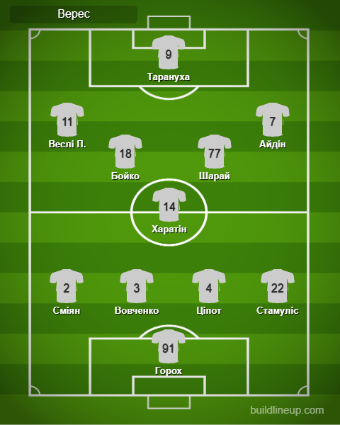 «Верес»: Горох – Сміян, Вовченко (Гончаренко, 46), Ціпот, Стамуліс – Харатін (Кльоц, 78)– Веслі П. (Годя, 78), Бойко, Шарай (Куція, 90+1), Айдін – Тарануха (Пушкуца, 87).
