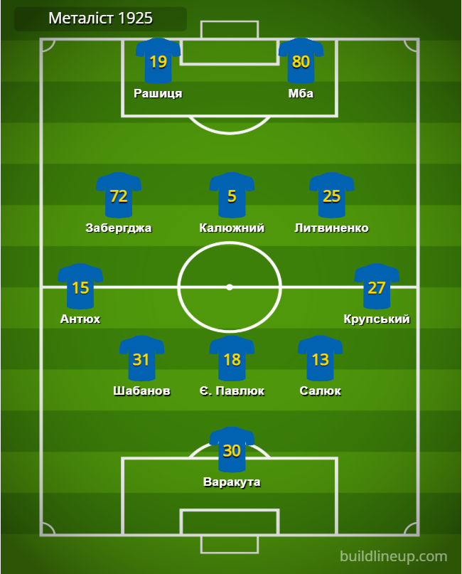 «Металіст 1925»: Варакута – Антюх, Шабанов, Є. Павлюк, Салюк, Крупський – Забергджа, Калюжний, Литвиненко – Рашиця, Мба (Когут, 82).