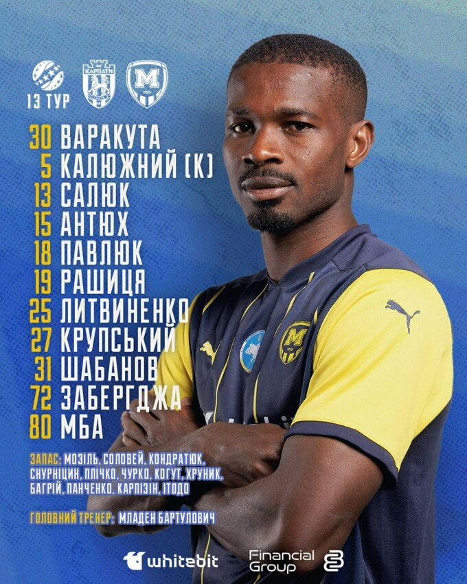 Запасні: Мисак, Киричок, Федор, Клименко, Карабін, Альварес.