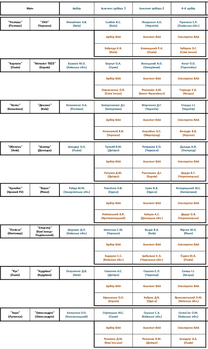 УПЛ. 13-й тур. Призначення суддів